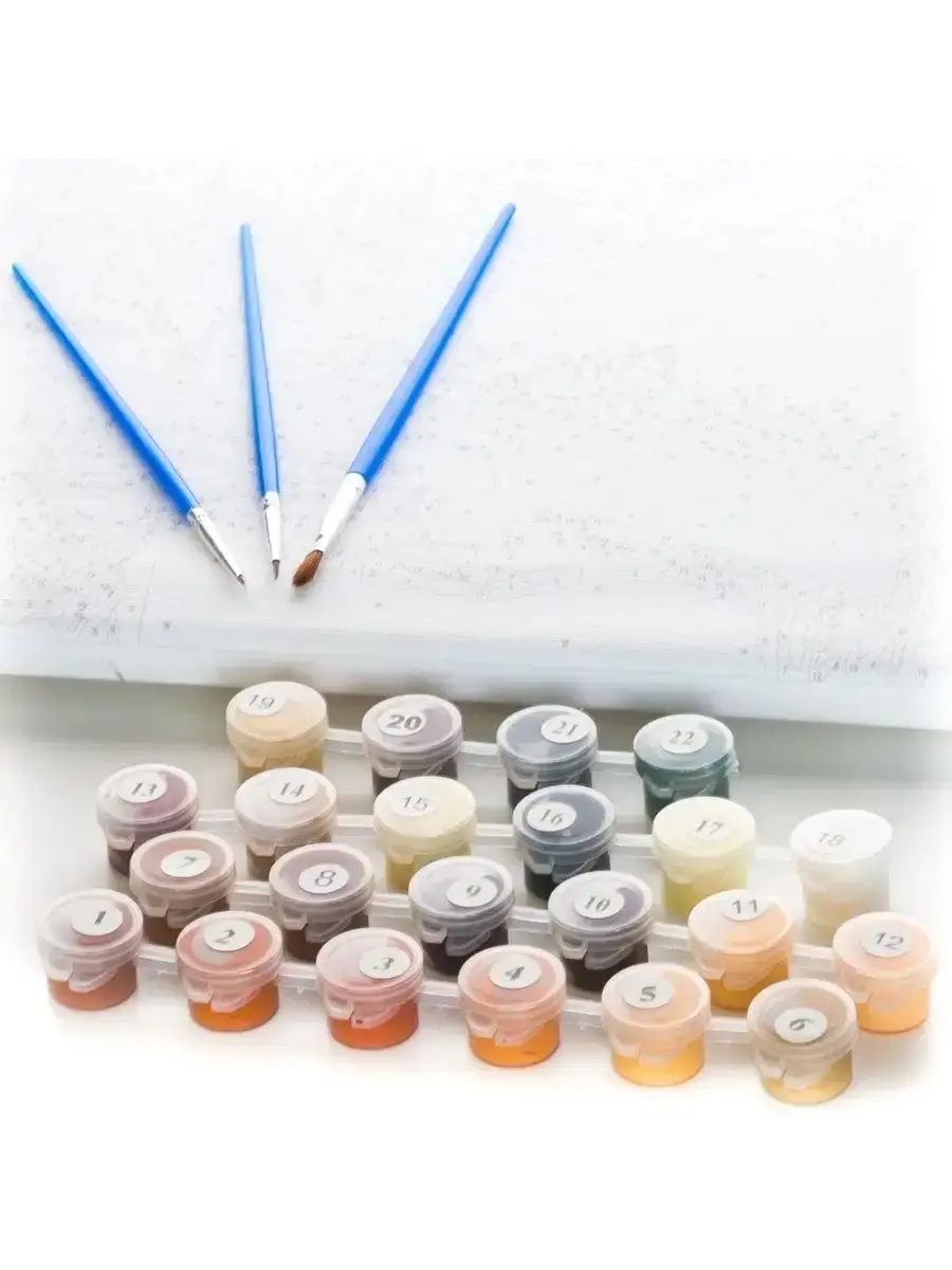 Полный комплект пронумерованных баночек с краской, не требуют смешивания