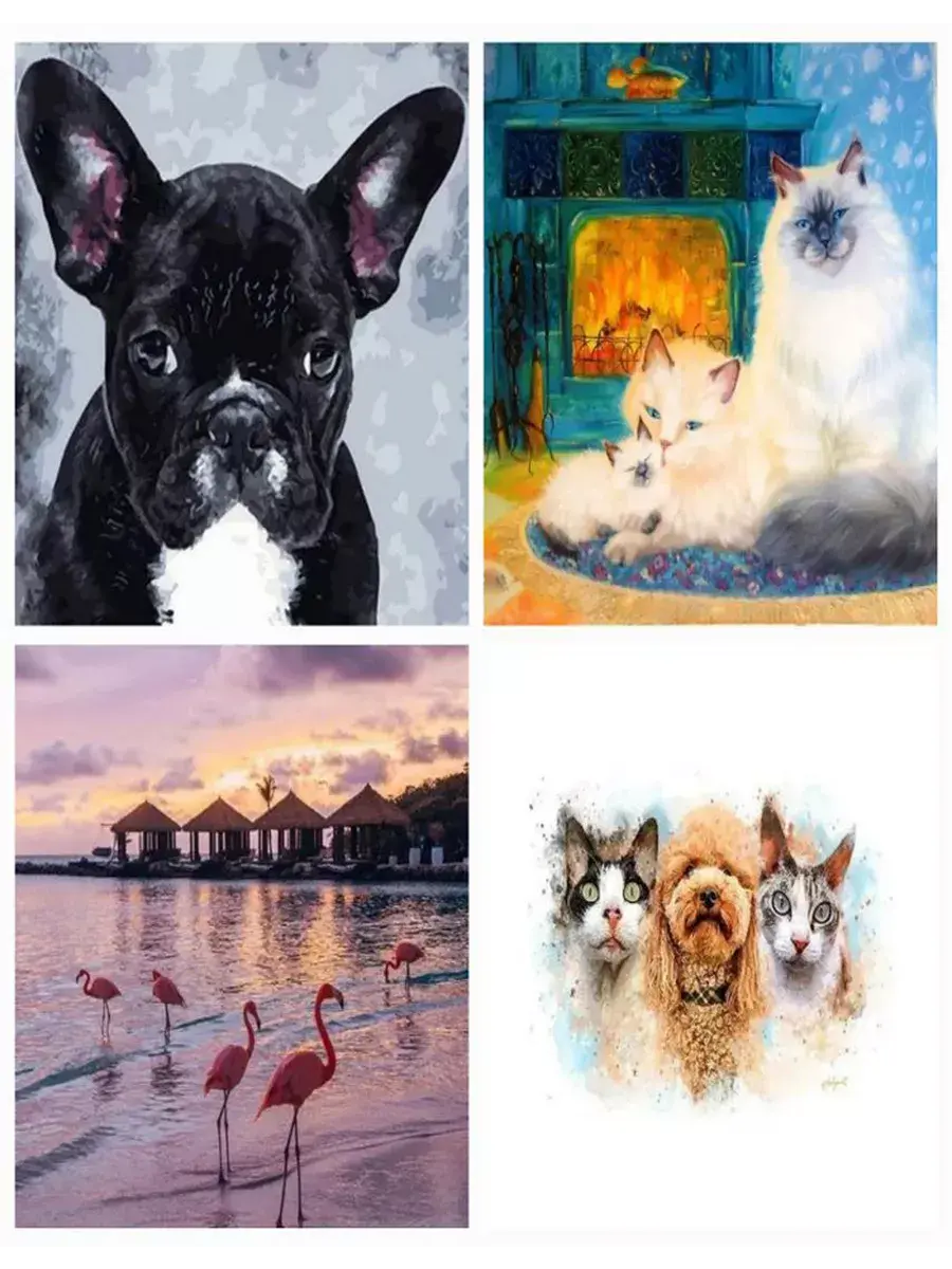 Комплект из 4х картин по номерам, комплект собирается рандомно!
