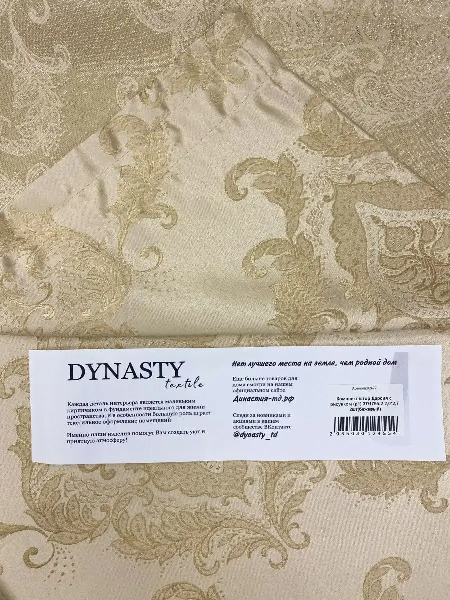 Комплект штор Дарсия состоит из двух полотен (ширина каждого 150 см, высота – 250 см), изготовленных из ткани с шелковистой поверхностью. Эта ткань приятная на ощупь, имеет отличную сопротивляемость различным повреждениям: ее практически невозможно порвать или растянуть, оставить затяжки. Хорошо сохраняет форму, не садится даже после многократных стирок и сохраняет первоначальный цвет долгие годы.
