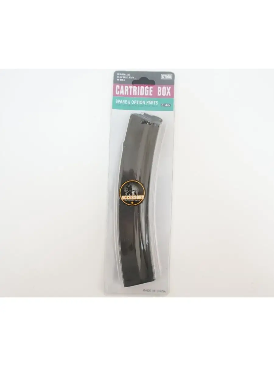 Бункерный магазин черного цвета от производителя CYMA. Подходит для страйкбольного оружия AEG – привод Cyma CM041 (MP5). Корпус изделия сделан из металла. Вес достигает 200 грамм. Максимальная вместимость данного магазина – 250 шариков. Зарядка снарядами осуществляется через окно в тыльной части устройства. Приобретая запасной магазин для MP5, вы обеспечиваете возможность бесперебойного боя и большую скорость перезарядки оружия.