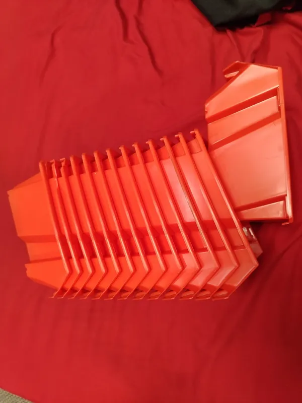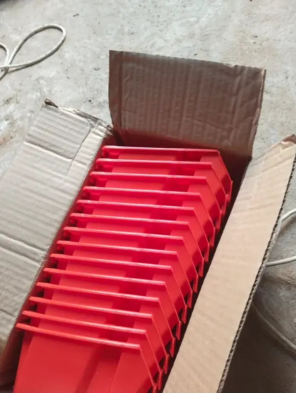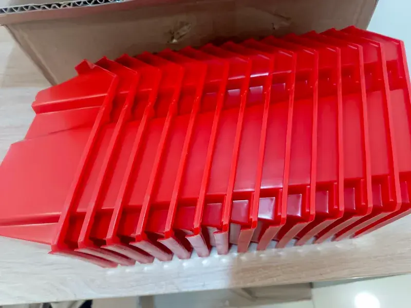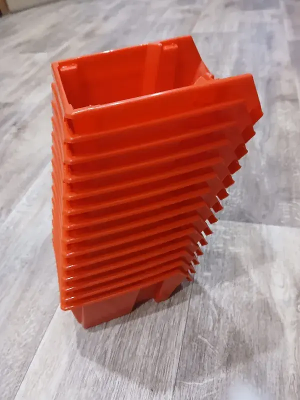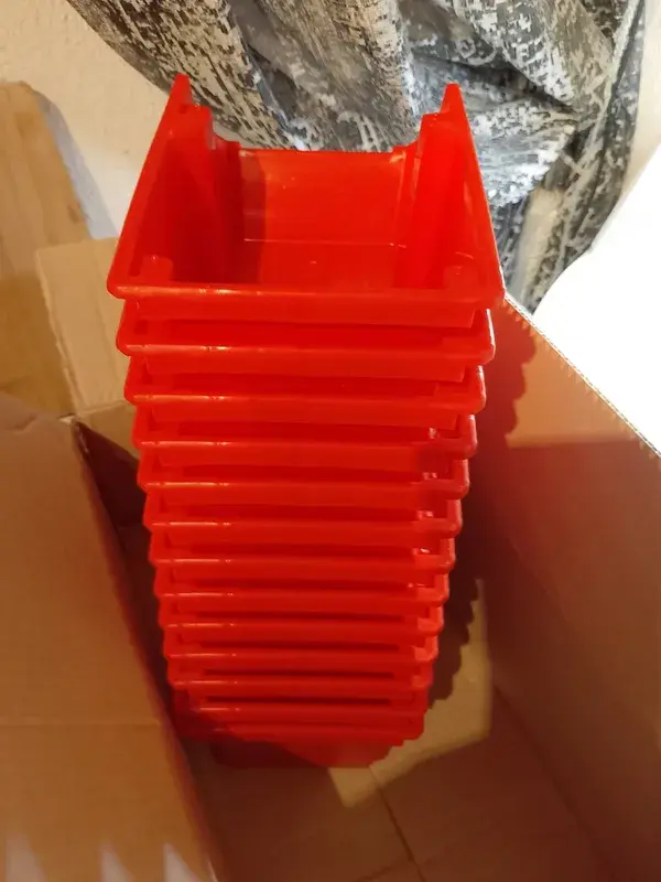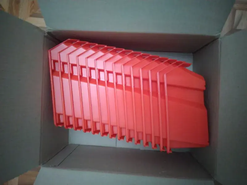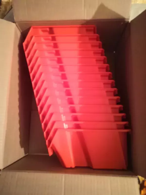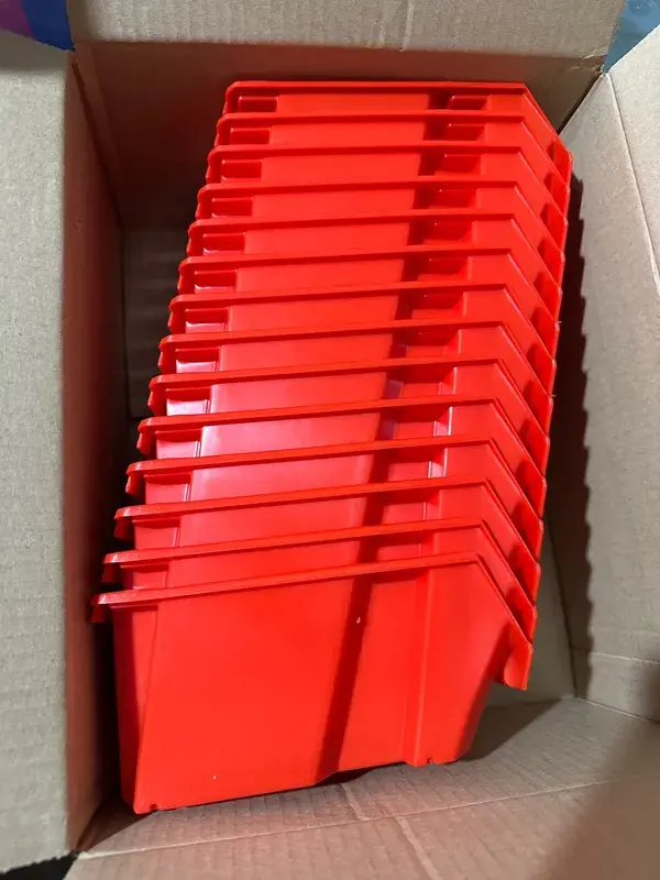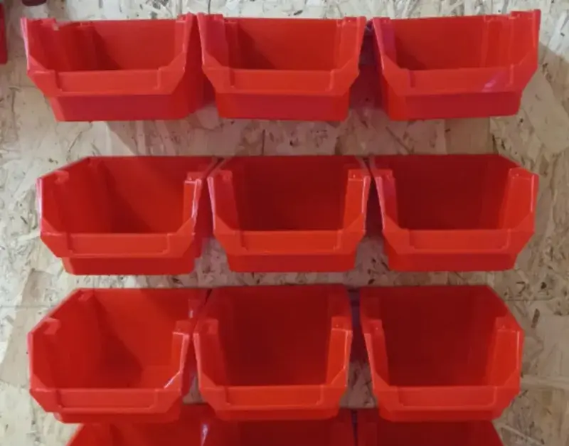 Лотки изготовлены из ударопрочного полипропилена, устойчивого к механическим нагрузкам, температурным перепадам и воздействию влаги. Яркий красный цвет делает контейнеры хорошо заметными и позволяет быстрее находить нужные элементы в рабочей зоне.