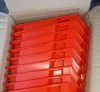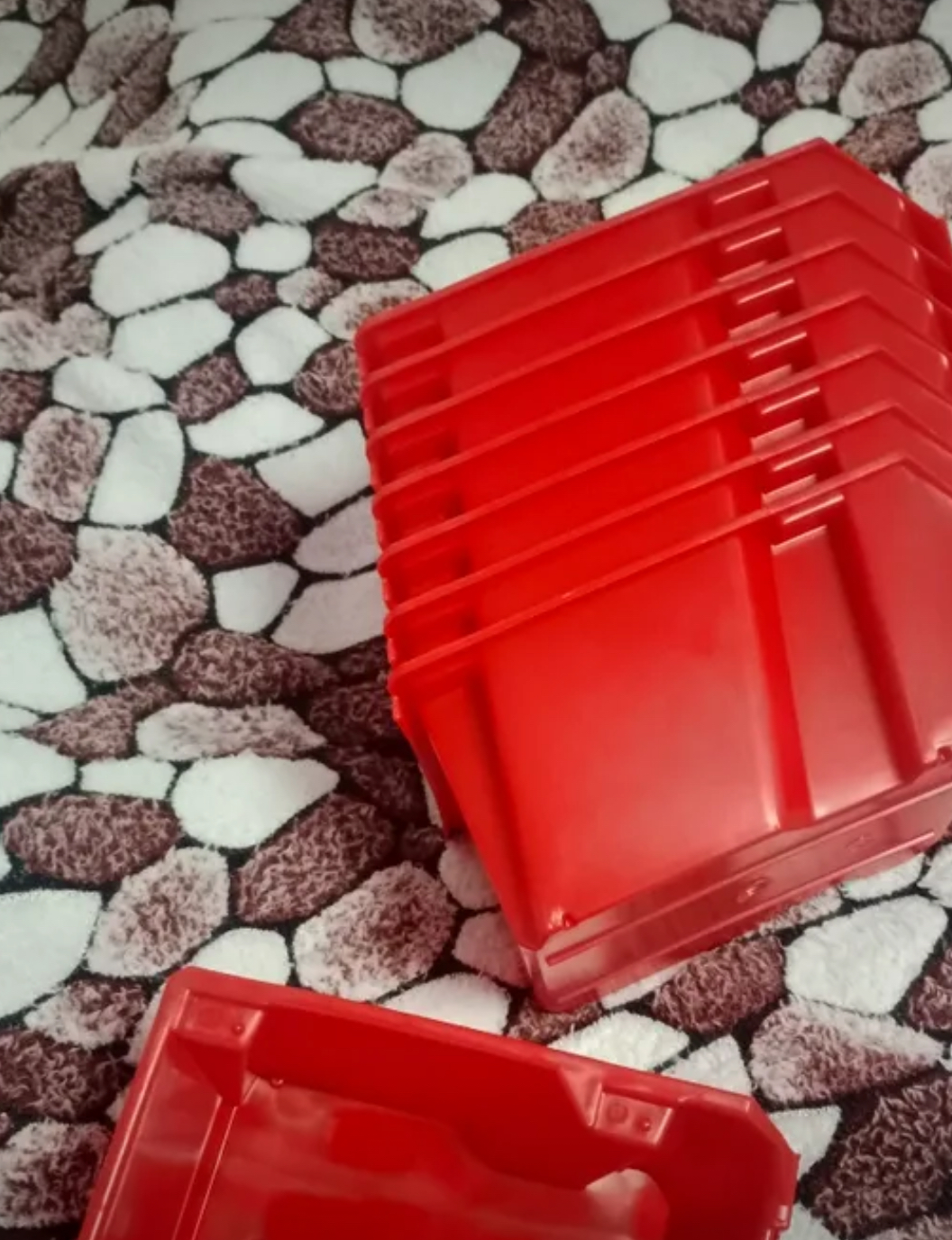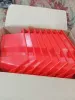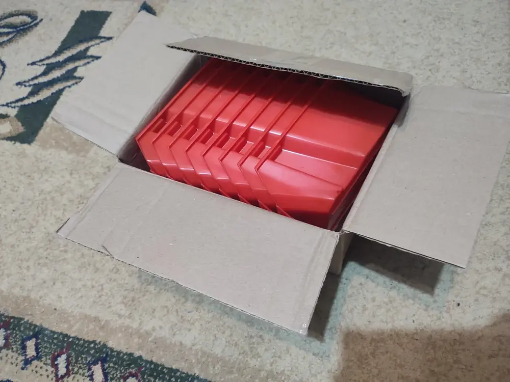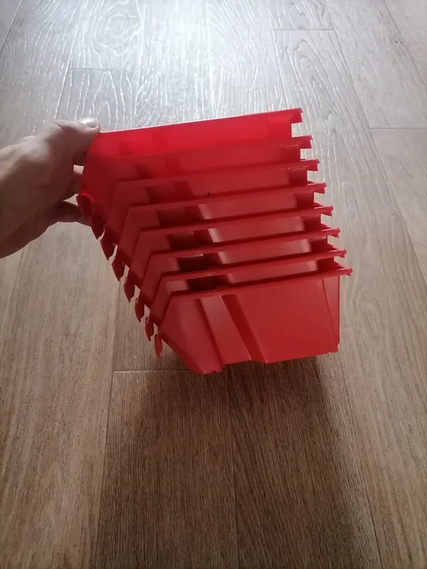 Лотки изготовлены из ударопрочного полипропилена, устойчивого к механическим нагрузкам, температурным перепадам и воздействию влаги. Яркий красный цвет делает контейнеры хорошо заметными и позволяет быстрее находить нужные элементы в рабочей зоне.