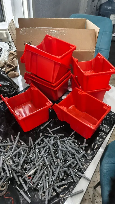 - Заполните лотки необходимыми метизами: саморезами, болтами, гайками, дюбелями и т. д.