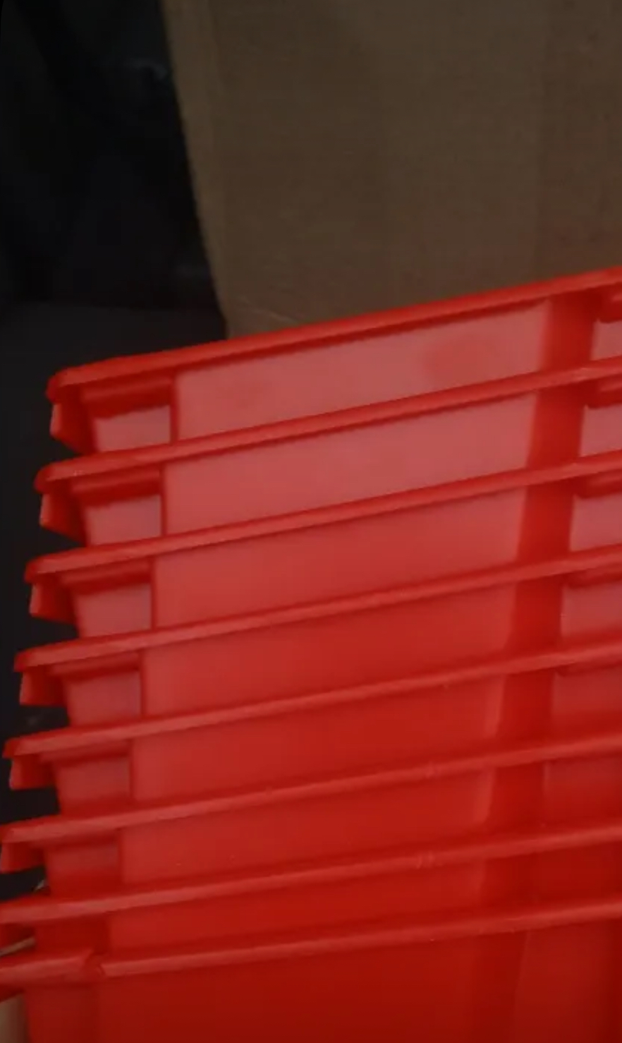 Лотки изготовлены из ударопрочного полипропилена, устойчивого к механическим нагрузкам, температурным перепадам и воздействию влаги. Яркий красный цвет делает контейнеры хорошо заметными и позволяет быстрее находить нужные элементы в рабочей зоне.