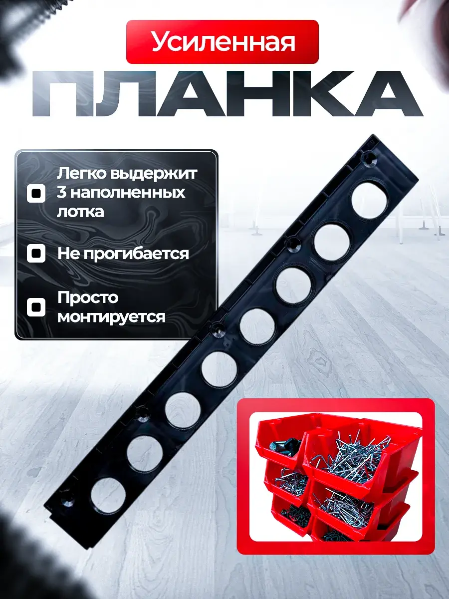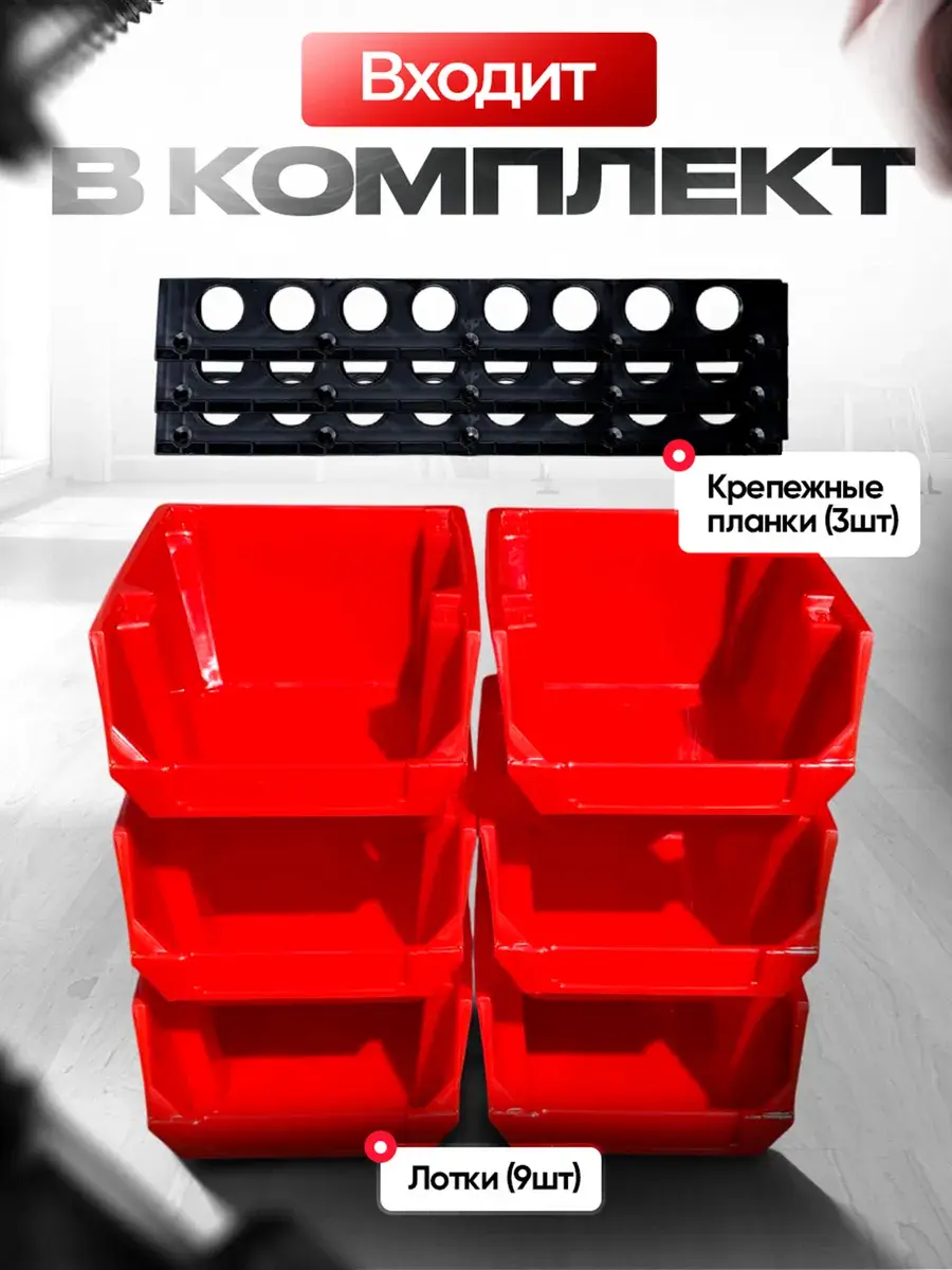 Особое внимание стоит обратить на комплектацию этого набора: он включает 9 лотков для хранения метизов и 3 планки для соединения этих лотков между собой. Это позволяет создать эффективную систему хранения для вашего рабочего пространства, которая будет удобной и функциональной.