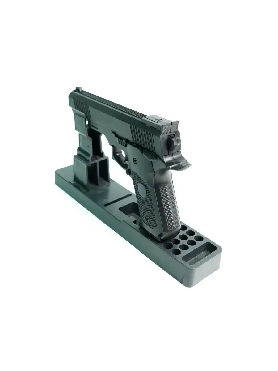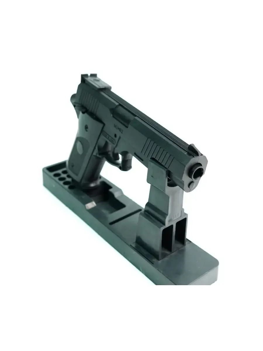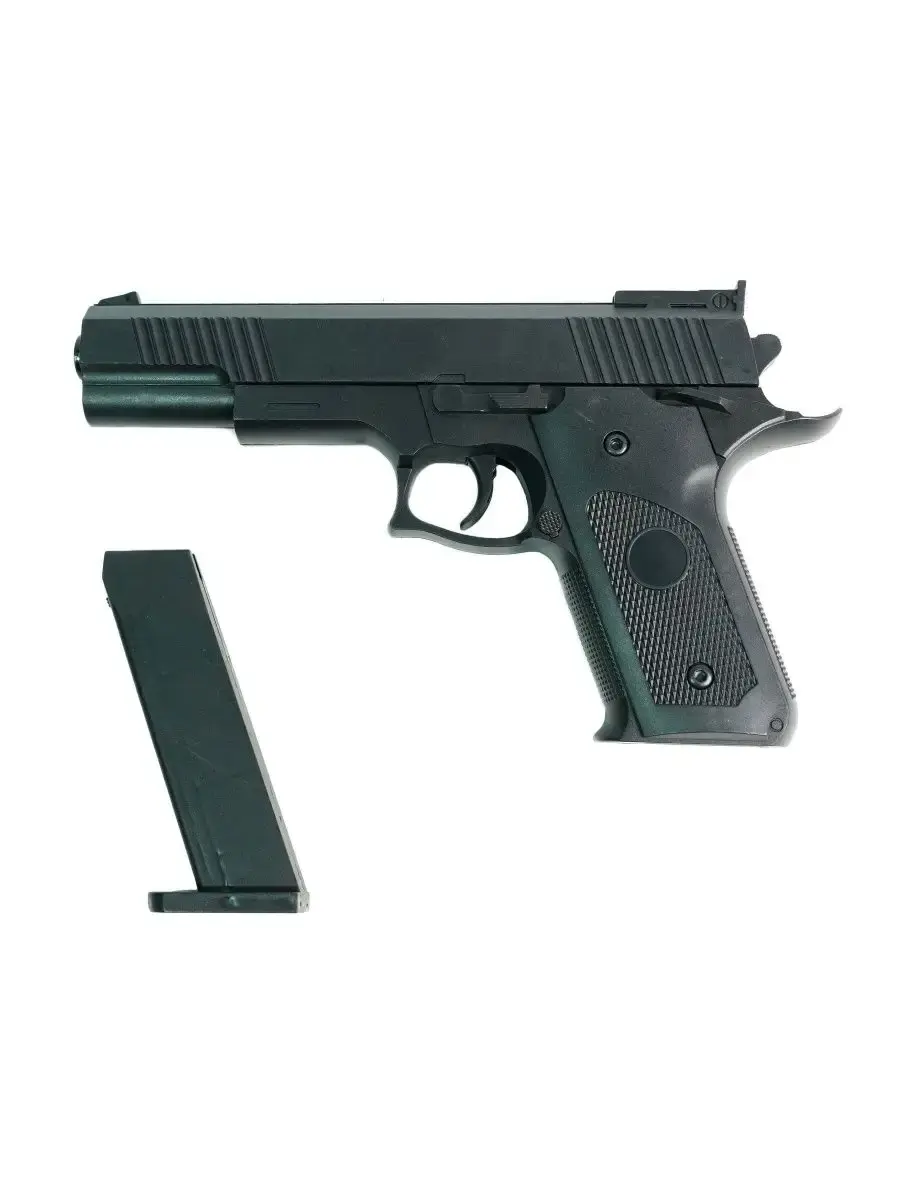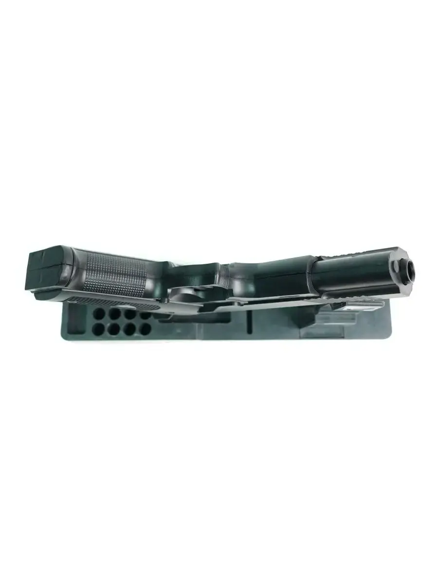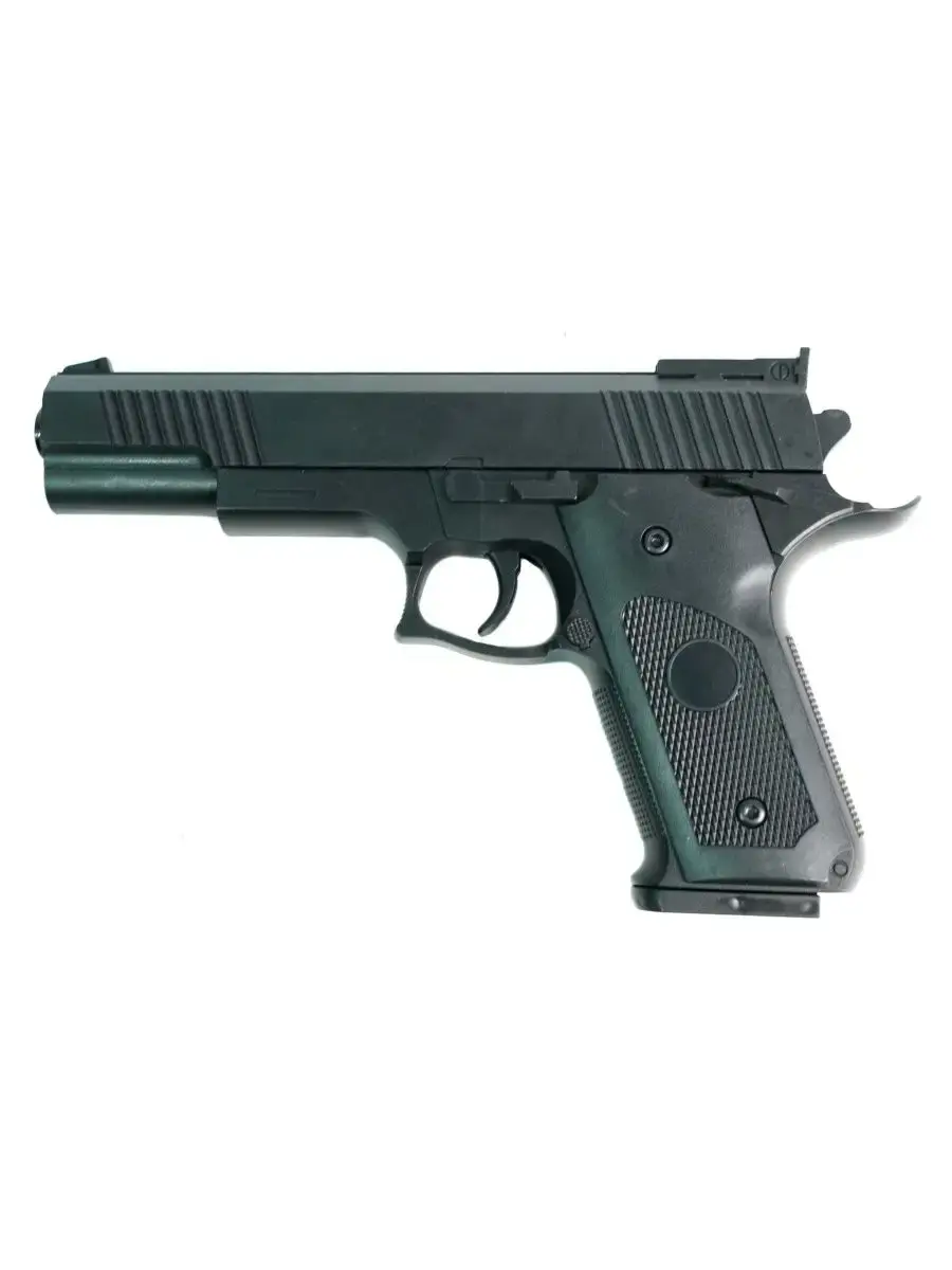 Пистолет Shantou 100001922 Пружинный (спринговый) пистолет для развлекательной стрельбы от фирмы Shantou. Для выстрела требуется предварительно взвести затвор, при этом сжимается боевая пружина. При нажатии на спусковой крючок пружина освобождается, и под ее действием соединенный с ней порешнь сжимает воздух в цилиндре, расположенном внутри корпуса. Под действием этого сжатого воздуха шарик выстреливается из ствола. Для стрельбы из пистолета Шанту 100001922 используются пластиковые шарики ВВ диаметром 6 мм. Все основные детали пистолета выполнены из пластика.