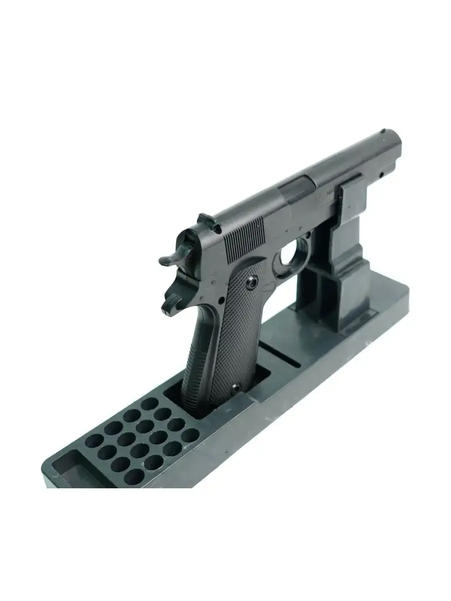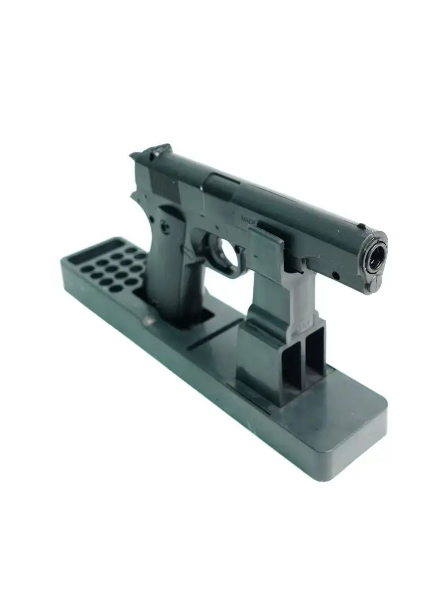 Пистолет Shantou 100002115 Пружинный (спринговый) пистолет для развлекательной стрельбы от фирмы Shantou. Для того, чтобы сделать выстрел, необходимо предварительно взвести затвор, сжав таким образом боевую пружину. При нажатии на спусковой крючок пружина освобождается, и под ее действием соединенный с ней порешнь сжимает воздух в находящемся внутри цилиндре. Под действием этого сжатого воздуха шарик выстреливается из ствола. Для стрельбы из пистолета Шанту 100002115 используются пластиковые шарики ВВ диаметром 6 мм. Все основные детали пистолета выполнены из пластика.