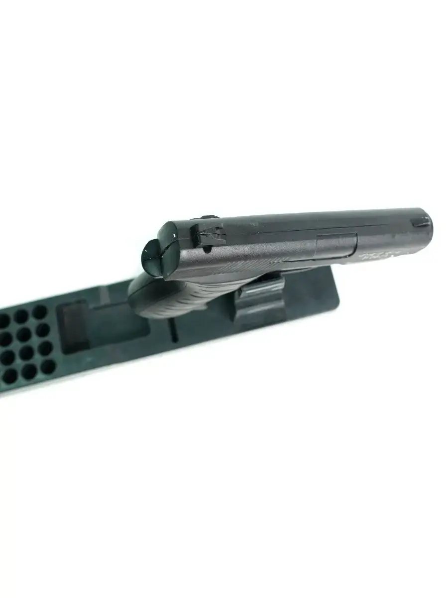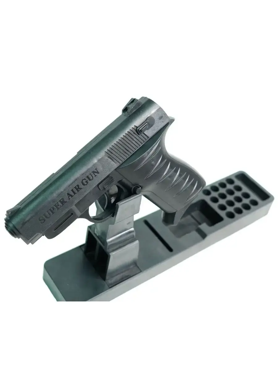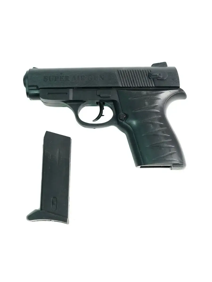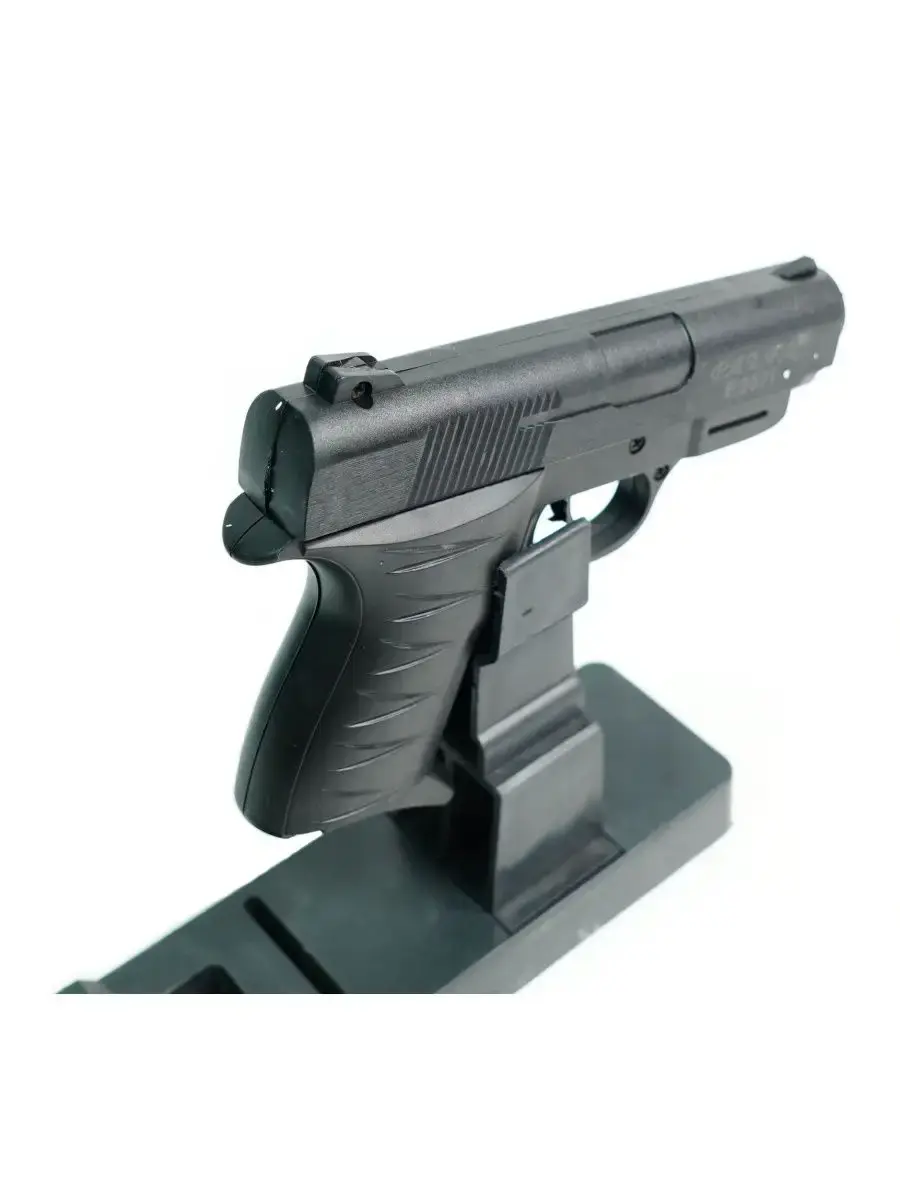 Пистолет Shantou B00777 Пружинный (спринговый) пистолет от фирмы Shantou для развлекательной стрельбы. Для выстрела необходимо предварительно взвести затвор, при этом сжимается боевая пружина. При нажатии на спусковой крючок пружина освобождается, и под ее действием соединенный с ней порешнь сжимает воздух в находящемся внутри цилиндре. За счет энергии этого сжатого воздуха шарик выталкивается из ствола. Для стрельбы из пистолета Шанту В00777 используются пластиковые шарики ВВ диаметром 6 мм. Все основные детали пистолета выполнены из пластика.