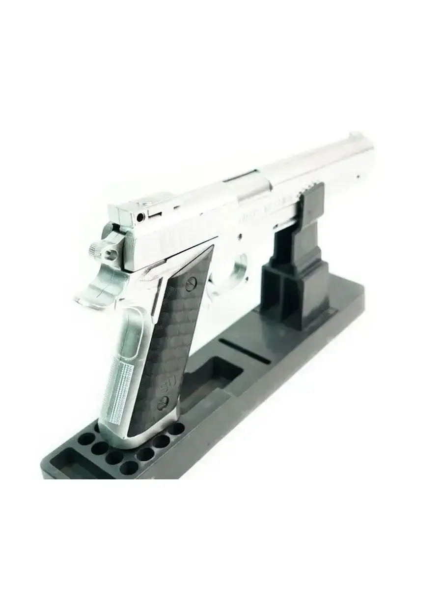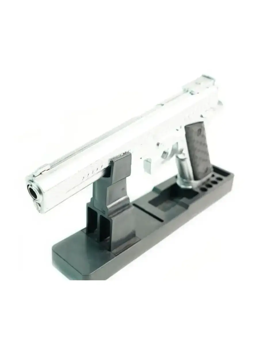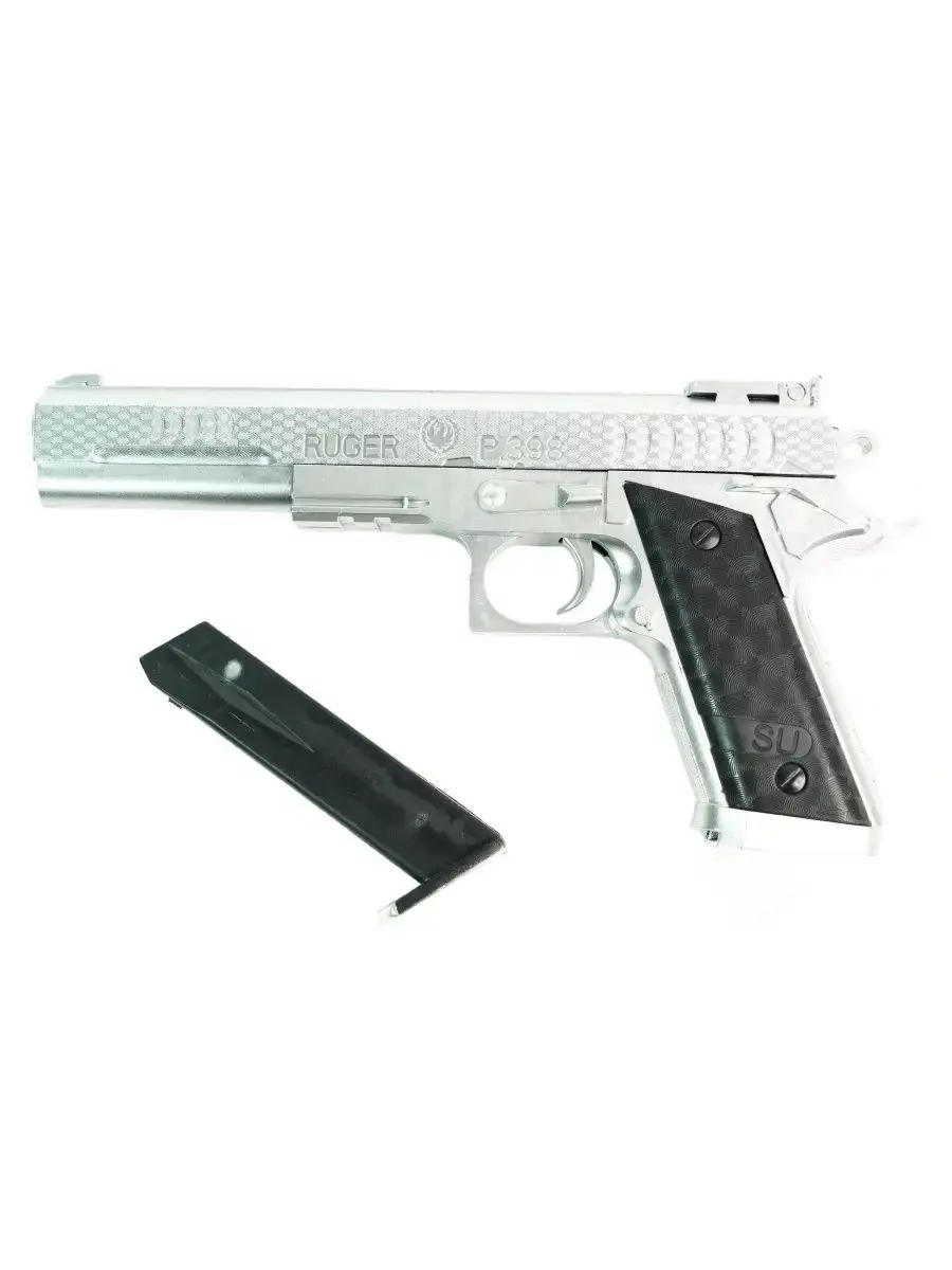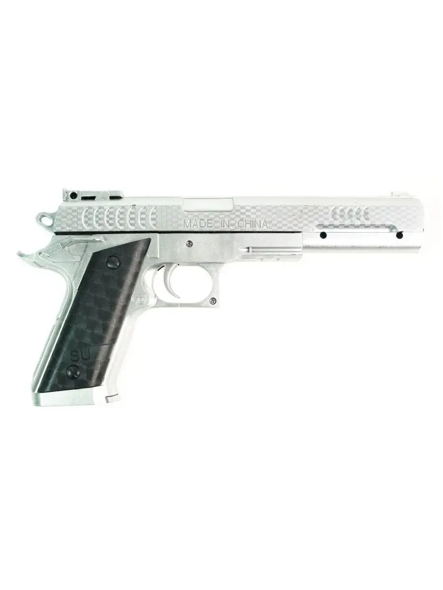 Пистолет Shantou B01448 Пружинный (спринговый) пистолет от китайской фирмы Shantou, предназначеный для развлекательной стрельбы. Для выстрела требуется предварительно взвести затвор, при этом сжимается боевая пружина. При нажатии на спусковой крючок пружина освобождается, и под ее действием соединенный с ней порешнь сжимает воздух в находящемся внутри цилиндре, после чего давление этого сжатого воздуха выталкивает шарик из ствола. В качестве боеприпасов для стрельбы из пистолета Шанту В01448 используются пластиковые шарики ВВ диаметром 6 мм. Все основные детали пистолета выполнены из пластика.