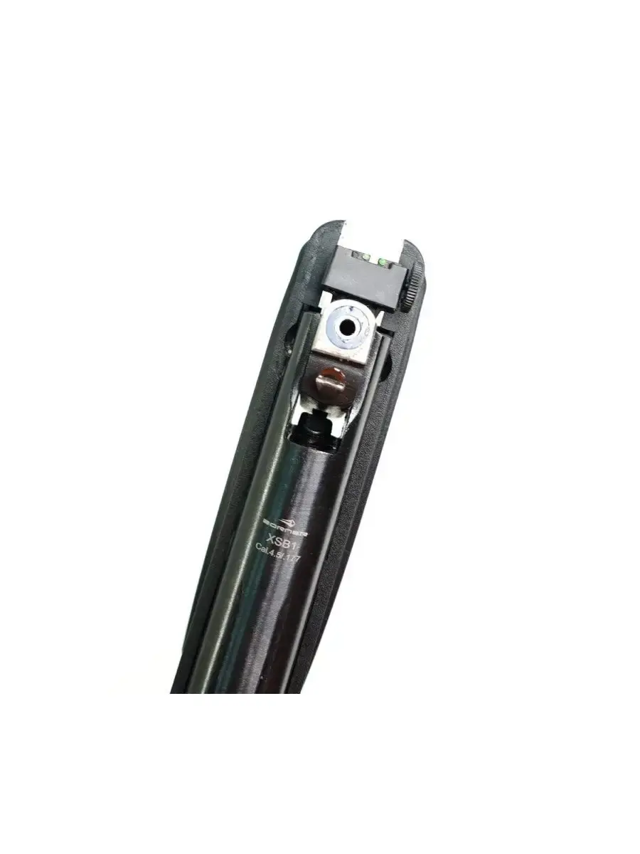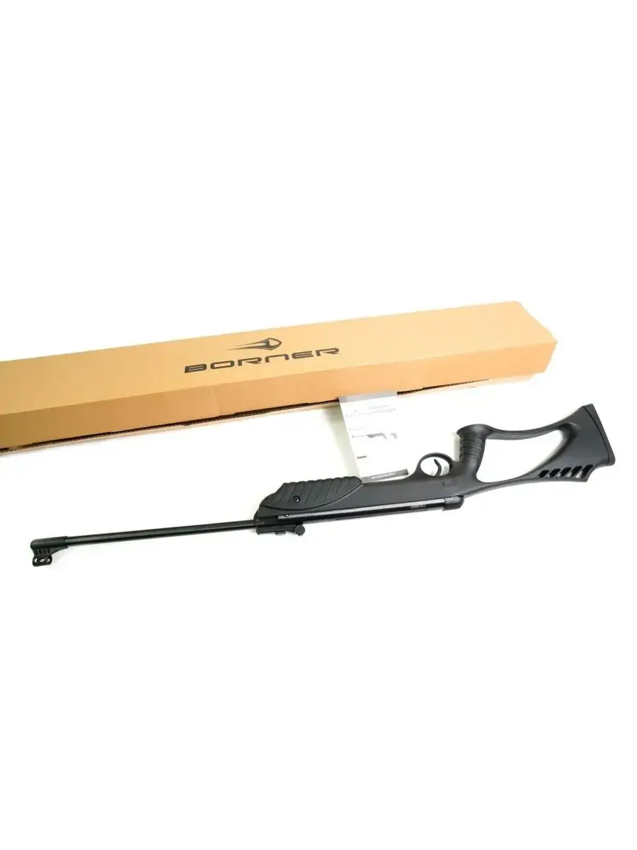 Пневматическая винтовка Borner XSB1 Пневматическая пружинно-поршневая винтовка XSB1 от фирмы Borner - модель калибра 4,5 мм, с переломным типом заряжания, предназначенная в основном для спортивно-развлекательной стрельбы. Дульная энергия этой модели не превышает 3 Дж, а следовательно, разрешительные документы для ее покупки не требуются. Прицельные приспособления - целик и мушка с фибероптическими нитями. Целик регулируется по вертикали и горизонтали, мушка помещена в защитный кожух. Есть возможность установки кронштейнов или базы для крепления оптического или коллиматорного прицела, для чего предусмотрена планка "ласточкин хвост" шириной 11 мм. Приклад и цевье винтовки Борнер ХСБ1 выполнены из пластика черного цвета; приклад - ортопедической формы с отверстием под большой палец. Безопасность обращения с винтовкой Борнер ХСБ1 обеспечивает двухпозиционный предохранитель.