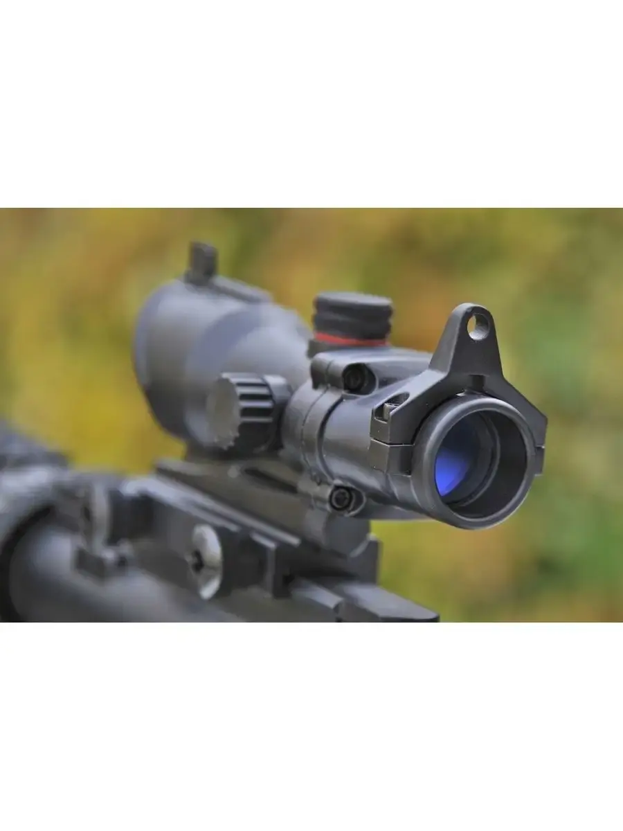 Цифры в названии ACOG 1x32 RD означают, что прицел имеет кратность х1, а диаметр линзы объектива – 32 мм. Длина коллиматора16см, высота – 9 см. Длина крепления 9 см, ширина – 20 мм
