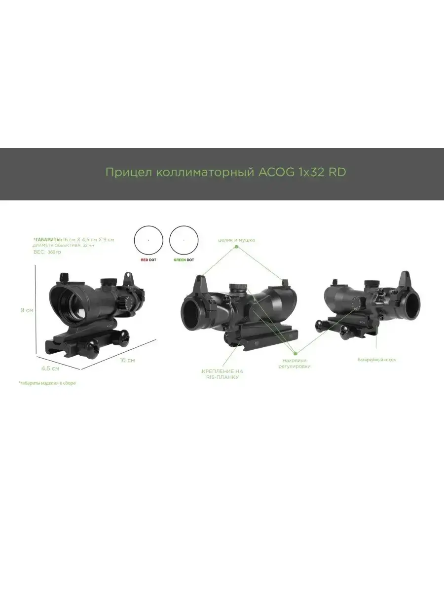 Прицел коллиматорный ACOG 1x32 RD отTrijicon (airsoft реплика).