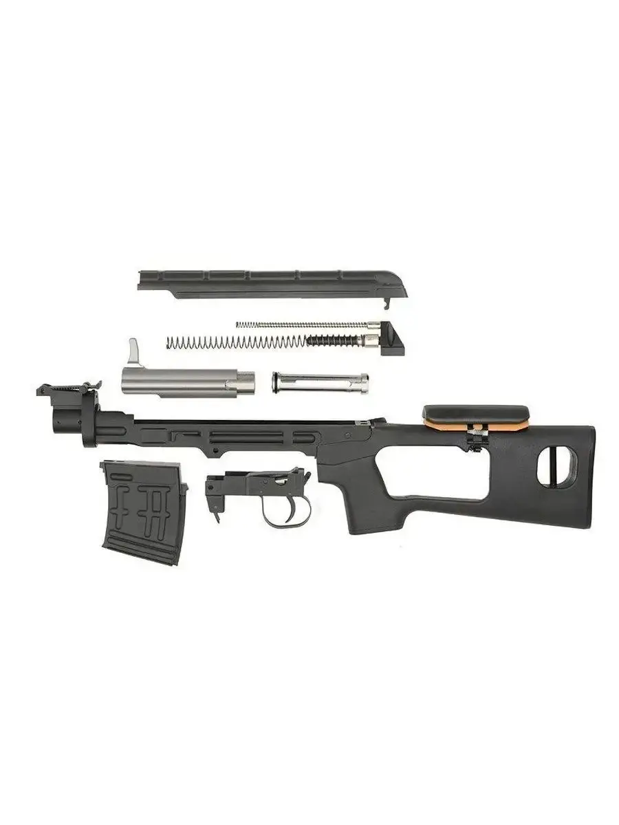 Страйкбольная копия снайперской винтовки СВД от китайского производителя A&K.Принцип действия - спринг (перед каждым выстрелом нужно вручную взводить пружину)Материалы корпуса: ложа и приклад - пластик, ствольная коробка и ствол - алюминиевый сплав.Винтовка СВД от A&K отличается хорошим качеством изготовления . На левой стороне ствольной коробки выполнена направляющая типа "ласточкин хвост" для крепления отечественных оптических прицелов или кронштейнов-переходников на планку пикатинни.К винтовке подходят механические и бункерные магазины производства A&K и Classic Army.