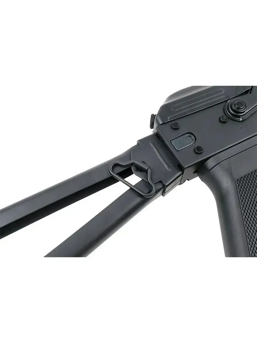 Пистолетная рукоятка пластиковая, черного цвета, приклад рамочный металлический, цевьё выполнено из черного пластика.