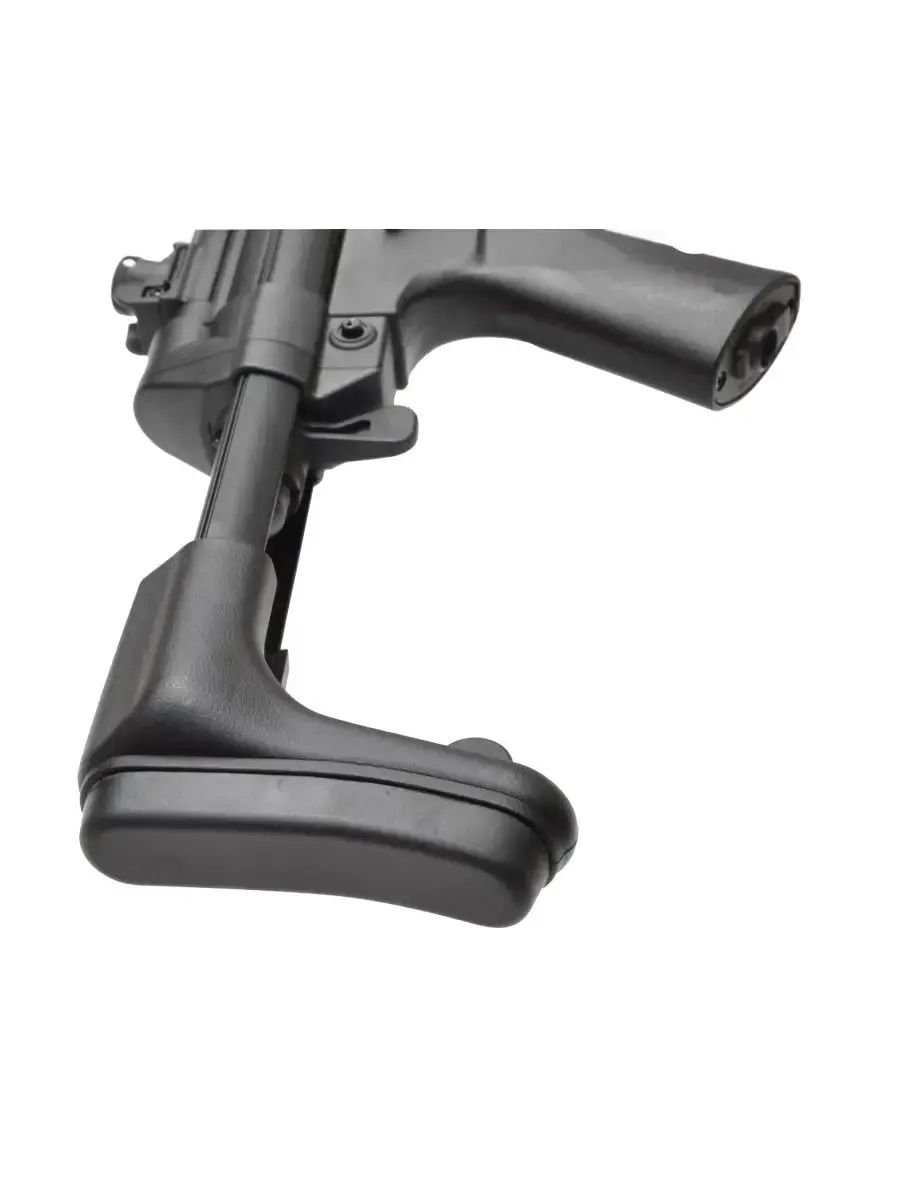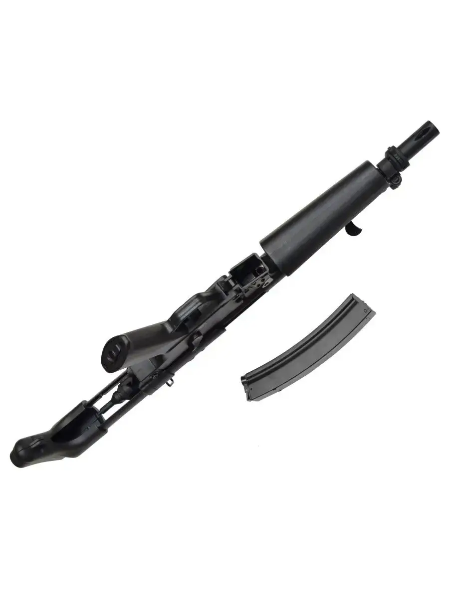 Обозреваемый страйкбольный привод повторяет габариты огнестрельного аналога. Компактный эйрсофт привод МП5 Цима имеет длину 70.5 сантиметров при массе, не превышающей три килограмма. За счет металлического приклада, который выделяется оригинальной конструкцией на салазках, пользователь способен дополнительно сократить размер пистолета-пулемета до 57.5 см для ведения боя в условиях замкнутого пространства.