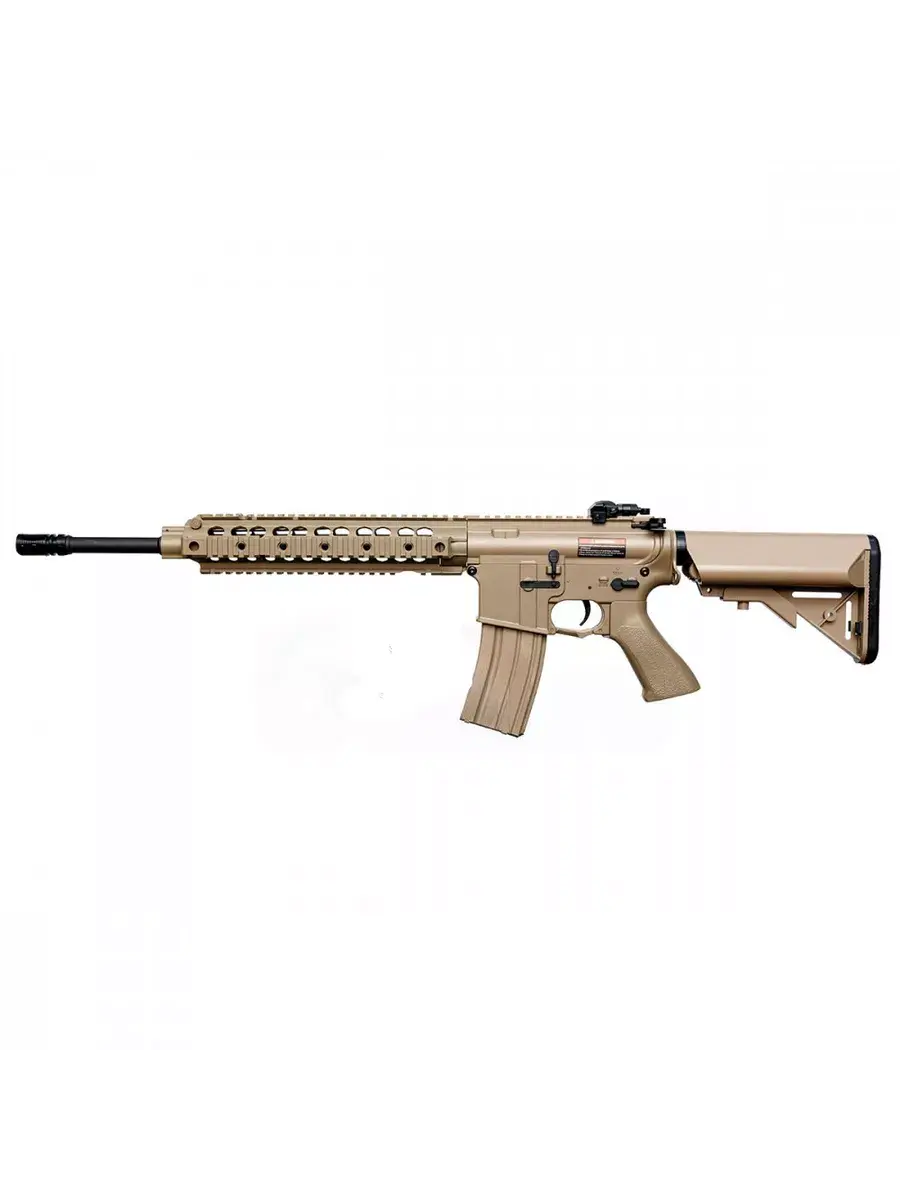 Скорость вылета 0,20 шара составляет ~125 м/с. Длинный ствол позволяет вести прицельный огонь на расстоянии около 30 метров. Переключатель огня, как и на боевом аналоге, имеет 3 положения: предохранитель, одиночный выстрел, автомат. Внутри установлен стандартный гирбокс 2 версии от CYMA, хоп-ап регулируемый. Телескопический приклад типа Crane Stock имеет 6 позиций длины.