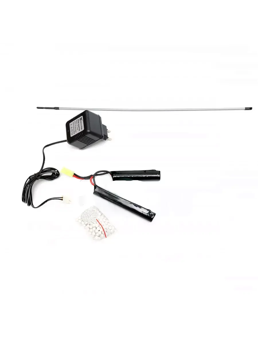Корпус автомата полностью выполнен из пластика, включая цевье, приклад и трубу приклада. Металлические части: гирбокс, внешний и внутренний стволики, крепежные винты. За счет преобладания пластика в материалах вес привода (без аккумулятора) составляет всего 1,8 кг.
