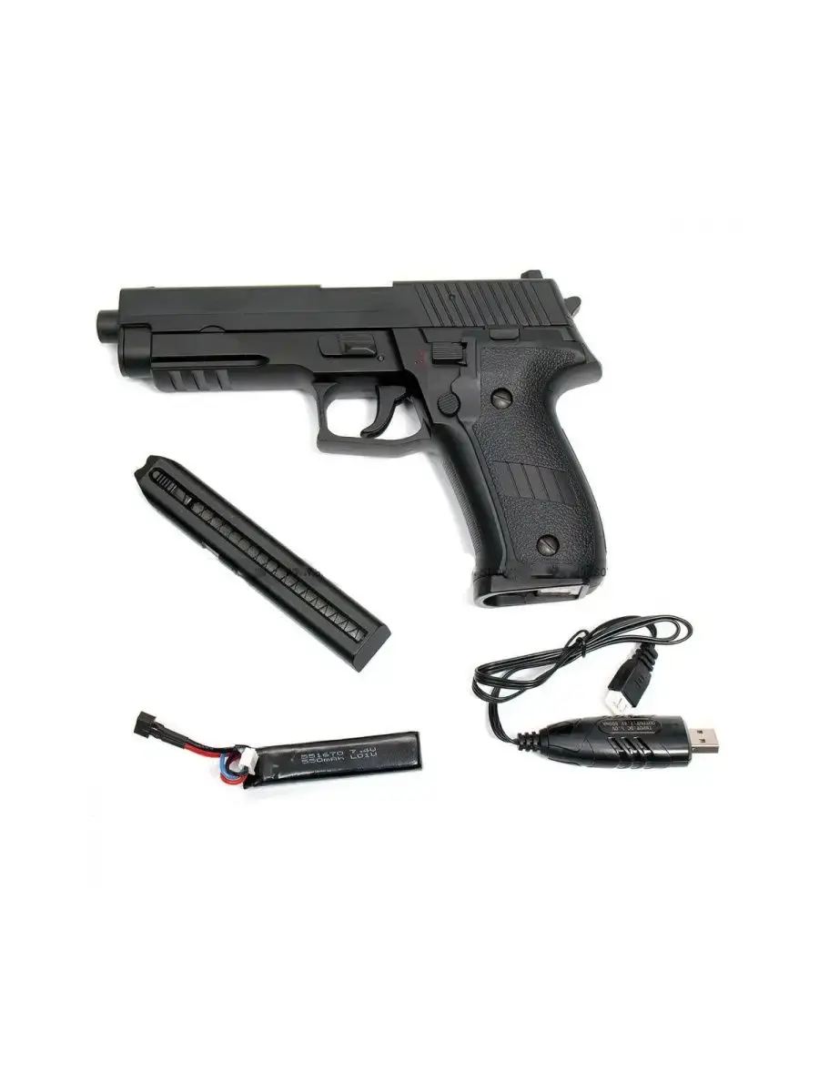 Затворная рама неподвижная, выполнена из металла; пистолет весит около 850 грамм. Длина – 220 мм. На нижней части имеется RAIL-система для крепления дополнительного оборудования (фонарик, ЛЦУ и т.д.). Аккумулятор располагается под затворной рамой, там же находится регулируемый хоп-ап. Помимо аккумулятора в комплекте идет зарядное устройство, магазин на 27 шаров, шомпол, лоадер, инструкция.