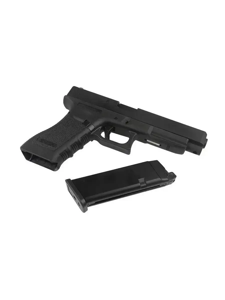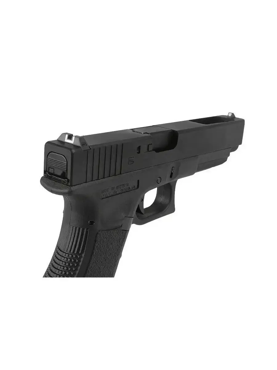 Пистолет Glock 34 от фирмы East Crane, Гонконг. Принцип действия пистолета: Green Gas Blowback.Корпус пистолета выполнен из ABS-пластика, слайд из алюминиевого сплава.Органы управления (затворная задержка, кнопка сброса магазина) и неполная разборка копируют боевой аналог. У пистолета есть регулируемый хоп-ап. Предохранитель автоматический, в виде клавиши на спусковом крючке. Под стволом выполнена планка пикатинни для установки дополнительного оборудования (фонаря или ЛЦУ). Питание: заправка газом. Начальная скорость шарика: 80-90 мс. Емкость магазина: 24 шара. Для стабильной работы рекомендуется хранить магазин полностью заправленным, с грингазом внутри.