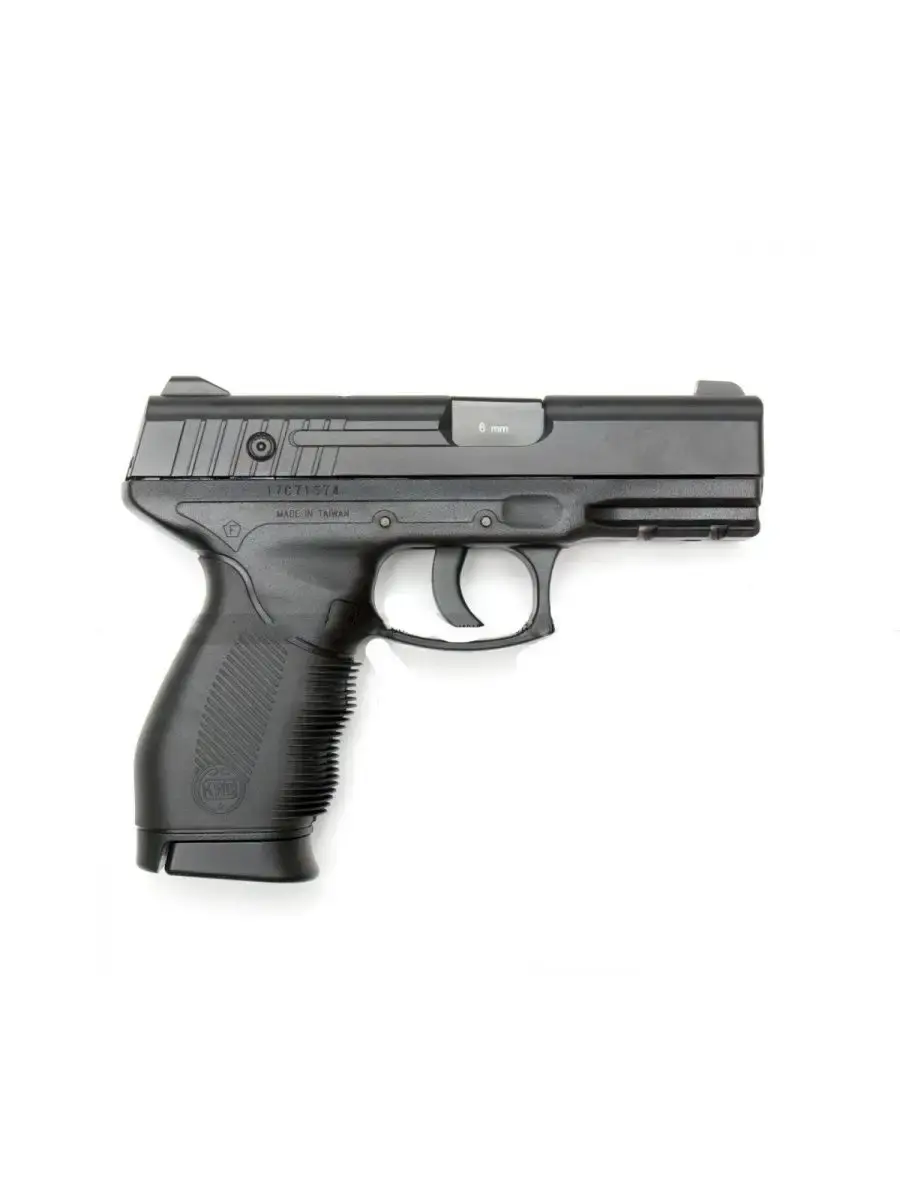 Страйкбольная версия пистолета Taurus PT99 от фирмы KWC, Тайвань. Принцип действия пистолета: CO2 Gas Non Blow Back. У пистолета не регулируемый хоп-ап, под стволом выполнена планка пикатинни для установки дополнительного оборудования (фонаря или ЛЦУ). Рамка пистолета выполнена из ABS-пластика. затвор - алюминиевый сплав. Питание от баллончиков СО2. Начальная скорость шарика: 110-120 м\с. Емкость магазина: 14 шариков. Не рекомендуется хранить магазин с установленным баллончиком CO2. Комплектация: пистолет, инструкция, магазин, пакет с шариками для теста. Историческая справка: В 2004 году известная бразильская оружейная компания "Forjas Taurus SA" представила PT 24/7 и приступила к производству пистолетов. Новое оружие было создано на базе компактных пистолетов серии Millennium/Millennium Pro и предназначалось для вооружения полиции и гражданских лиц.Кроме пистолетов модели PT 24/7 также была разработана модель PT 24/7 Pro, представленная в трех вариантах различной длины стволов – Compact (компактная модель), Standart (среднеразмерная модель), Long Slide (модель с длинным стволом). В 2005 году, для участия в конкурсе на новый пистолет для спецподразделений США US SOCOM, конструкторы Taurus создали модель PT 24/7 OSS.