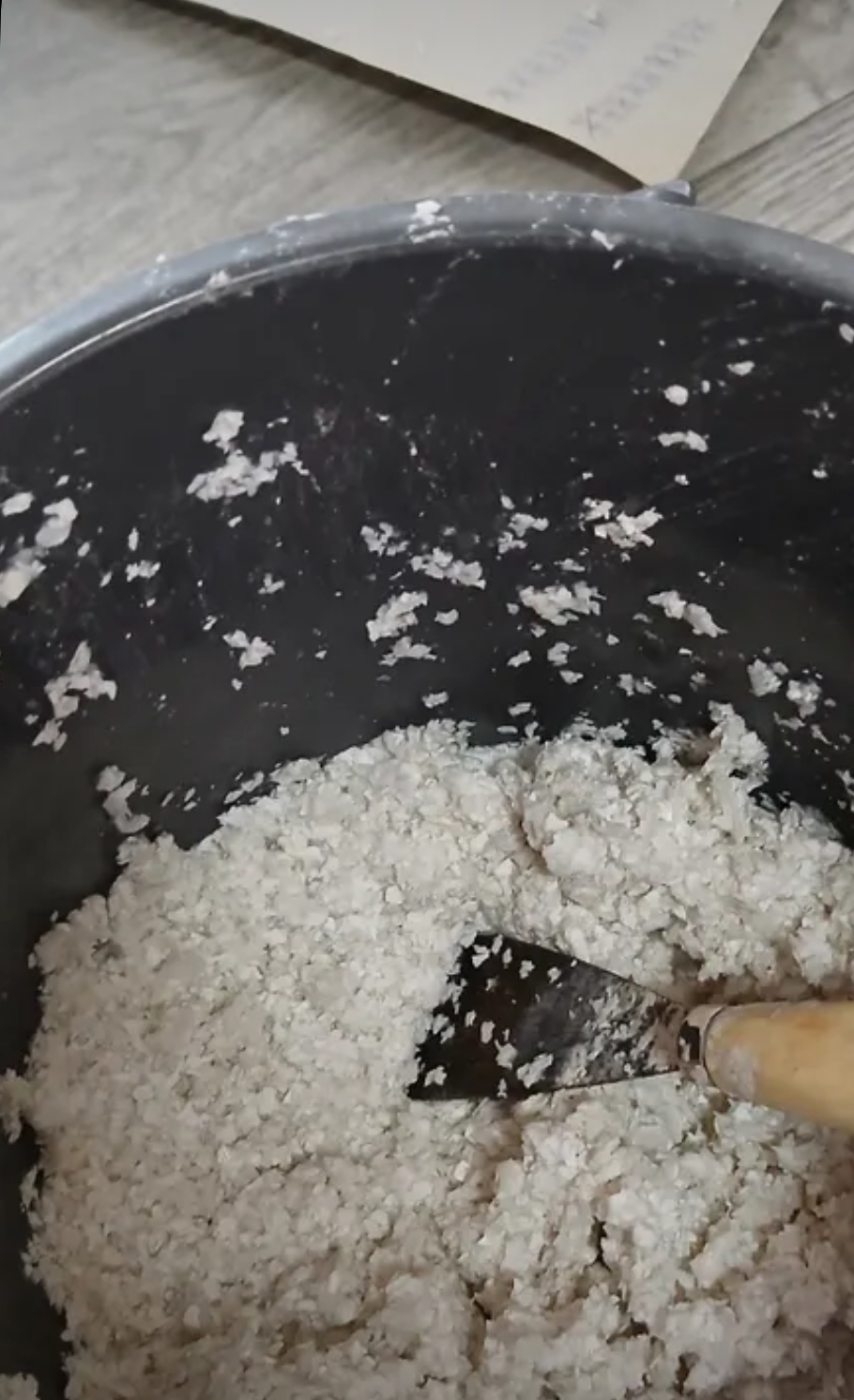 Перемешать вручную, перетирая смесь между пальцами для равномерного распределения.