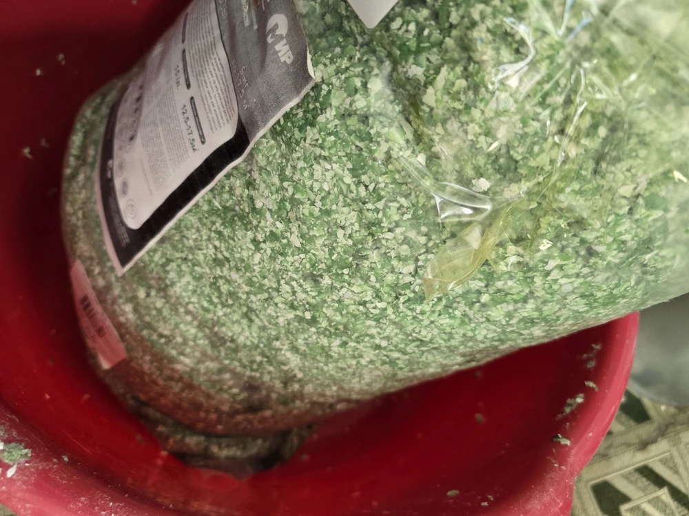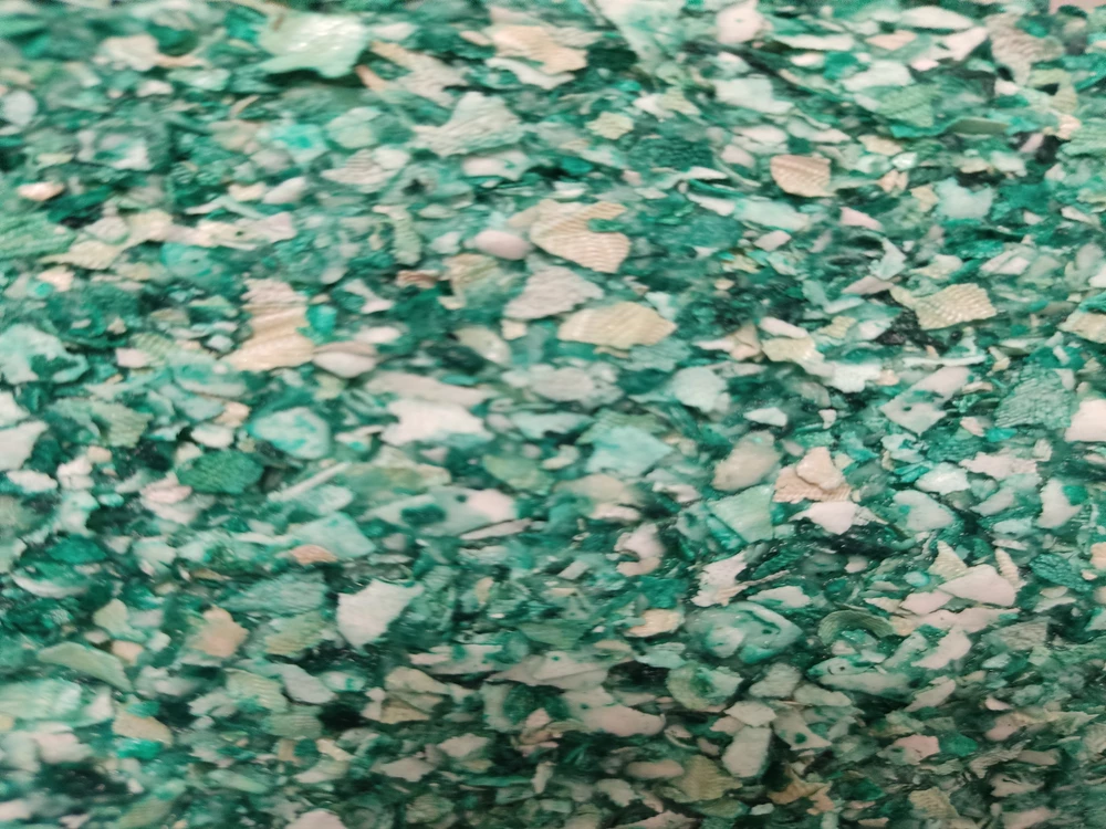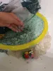 Насыщенный изумрудный цвет с белыми вкраплениями, на одном из фото видно, где уже смешанные с водой, они ярче.