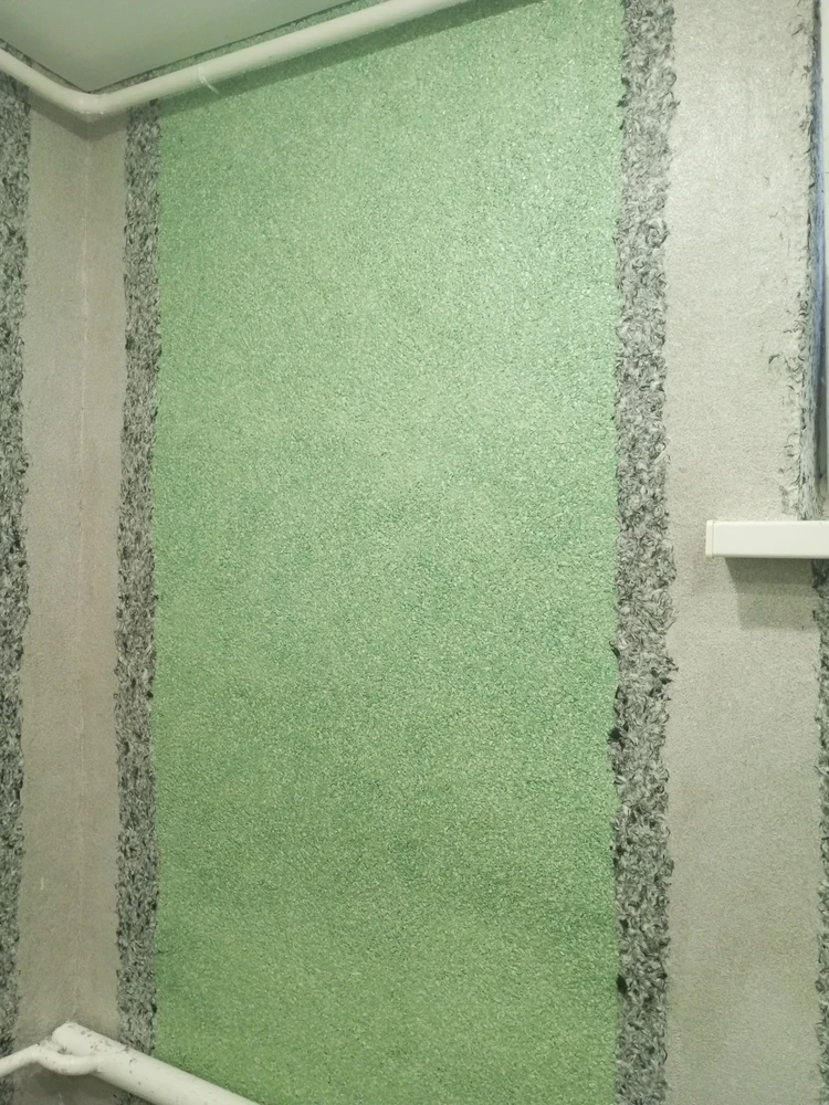 Цвет для меня оказался слишком ярким, поэтому развела зеленые обои белыми. Полученный результат вполне устроил, наносить обои было легко, ложились хорошо, ничего не сыпется.