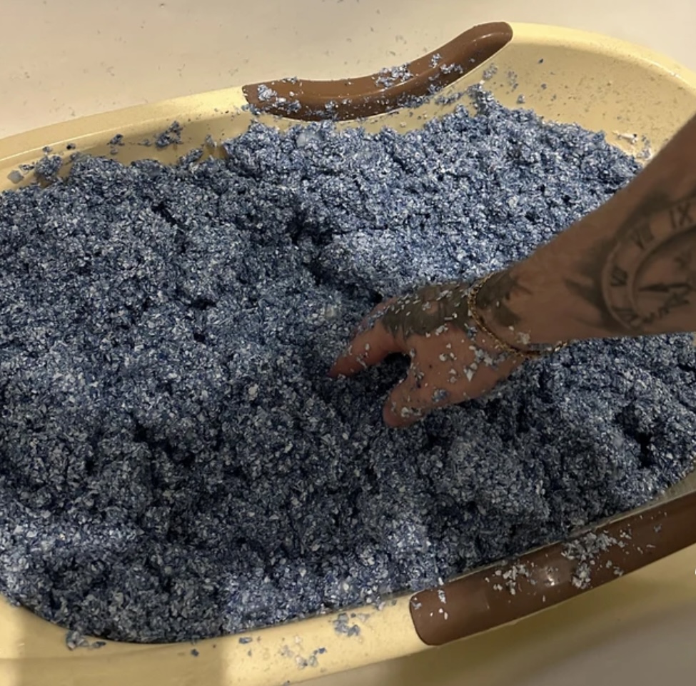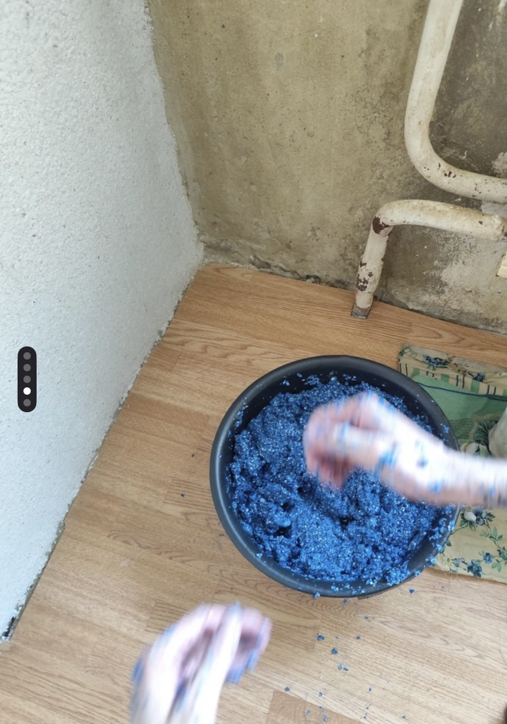 Перемешать вручную, перетирая смесь между пальцами для равномерного распределения.