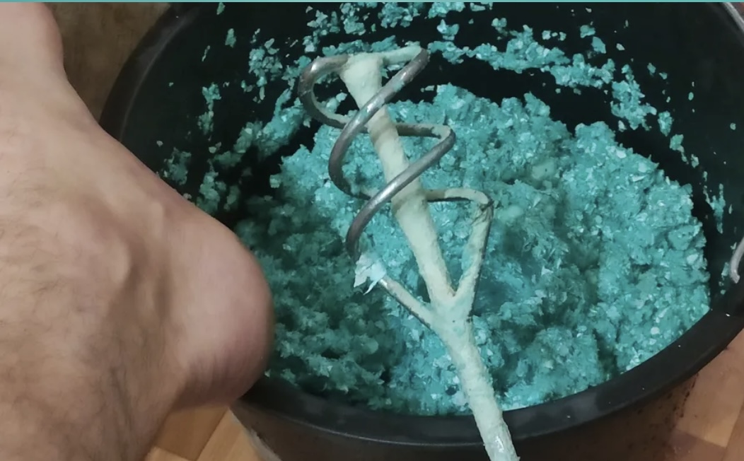 Перемешать вручную, перетирая смесь между пальцами для равномерного распределения.
